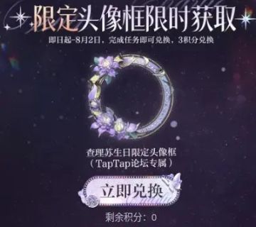 声明:以下所有链接和内容,都来自TAPTAP本站的游戏公司发布,符合《规则百科》,无任何外部链接和内容,请管理员核查。[表情_开心] 领取方式:使用手机,点击下方链接。 活动时限:2025年7月20日—2025年8月2日 徽章:点击下载链接,完成任务获得积分,使用3积分兑换《光与夜之恋》查理苏生日限定头像框。 有效期120天。 活动链接: * * * https://www.ta