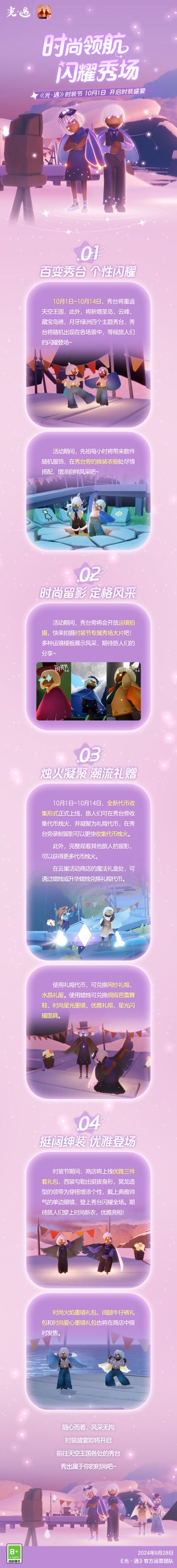 时尚领航 闪耀秀场|《光·遇》时装节更新内容公告