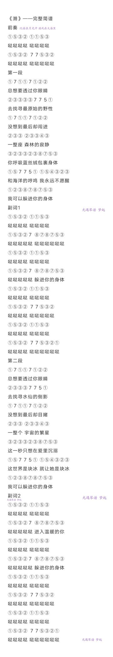 光遇琴谱 ①《溯》单指双指