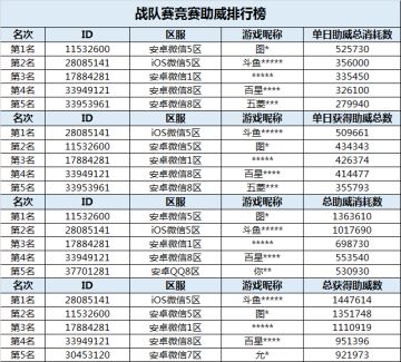 战队赛竞猜排行榜公布