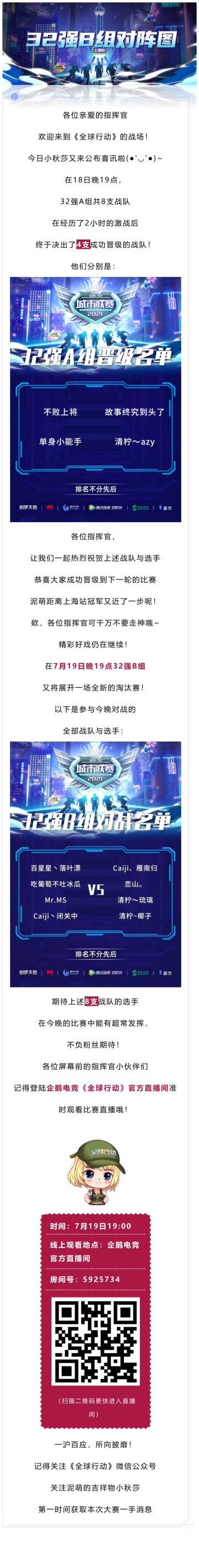 32强A组晋级名单公布,19日32强B组厉兵粟马,准备开战!