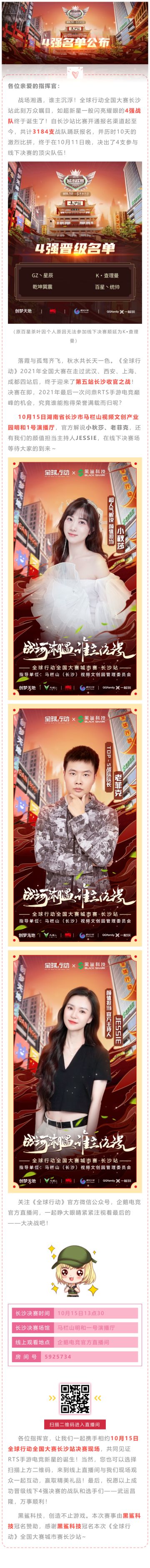 全球行动全国大赛城市联赛·长沙站!10月15日决赛,四强来袭,谁主沉浮!咱们明天见!