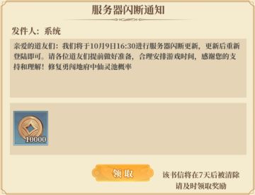 { "text": "各位道友,下午有临时更新,优化【地府闯关】玩法,请大家提前做好下线的准备,以免造成不必要的损失哈!", "raw_text": "" }