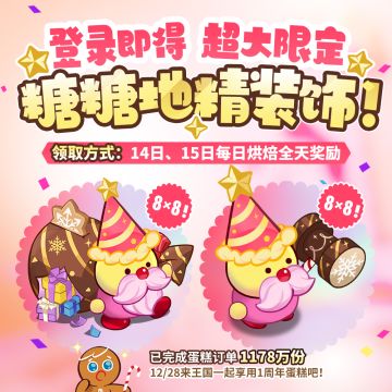 「明后天登录得超大糖糖地精!」蛋糕店火热营业中!