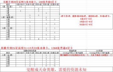 英雄升星表,新人,平民科普