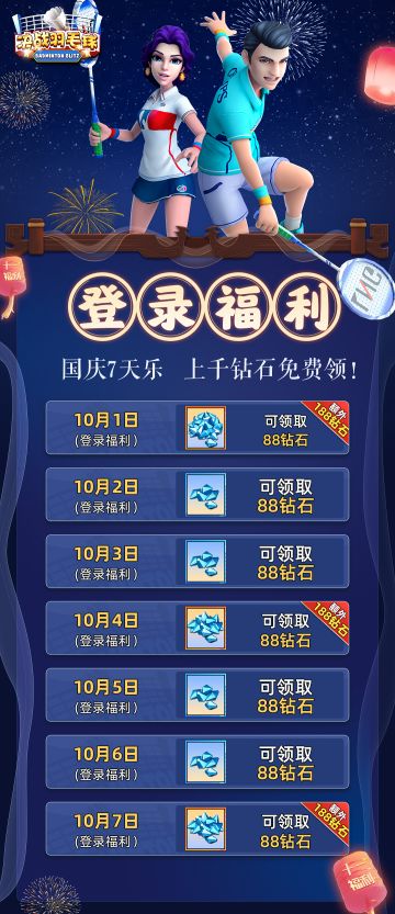 《决战羽毛球》国庆活动大集合!海量奖励等你拿!
