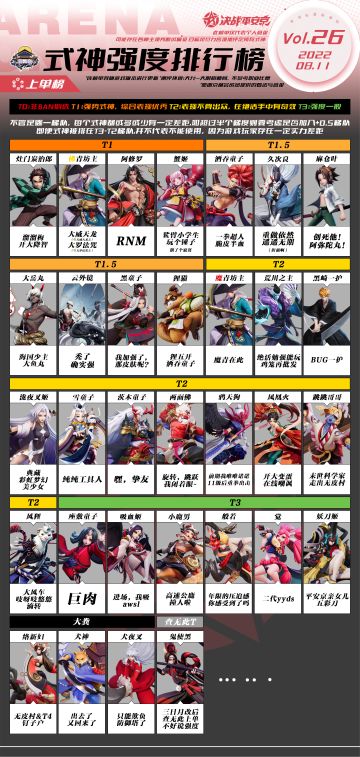 【搬运】决战平安京式神强度排行榜第二十二期