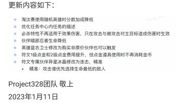 【热更新公告】1月11日14:00进行热更新
