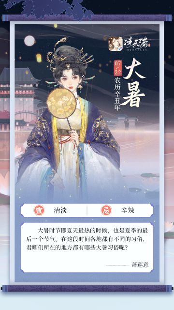 { "text": "赤日几时过,清风无处寻。\n还记得小暑时候的消暑秘籍吗?今天就是大暑啦,大暑时节阳光猛烈,是一年中日照最多、最炎热的节气,宝贝儿们记得做好防护哦~", "raw_text": "" }