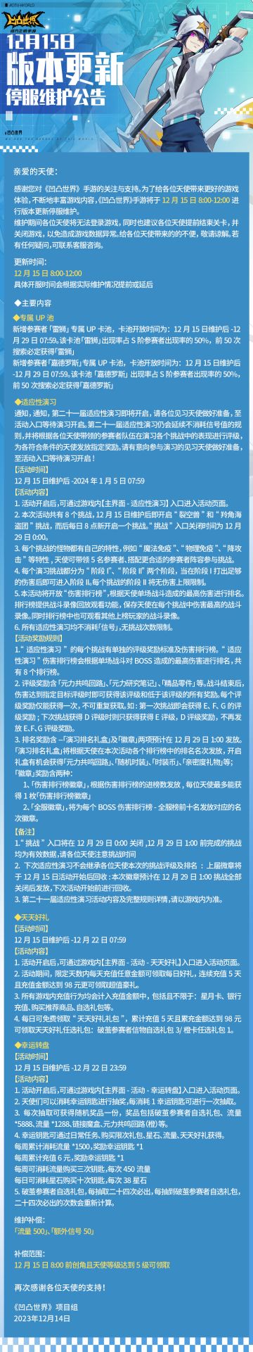 12月15日版本更新停服维护公告