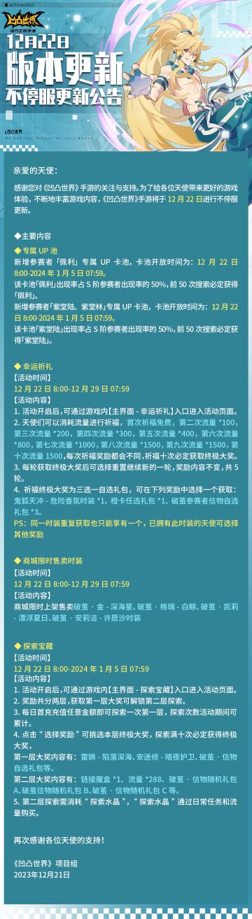 12月22日版本不停服更新公告