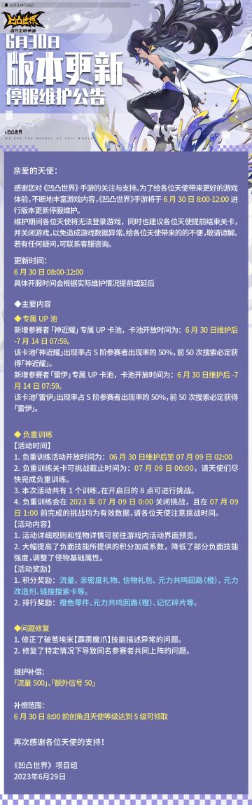 6月23日版本更新停服维护公告