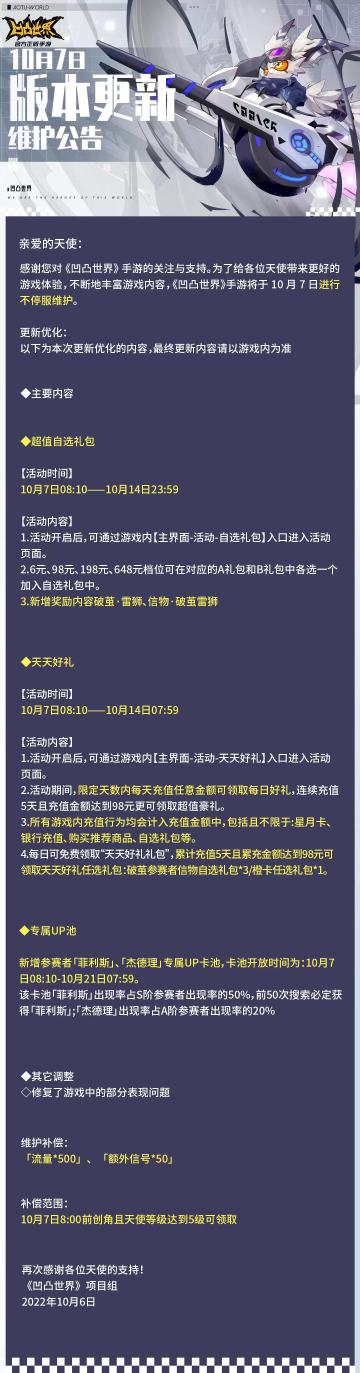 10月7日版本更新维护公告
