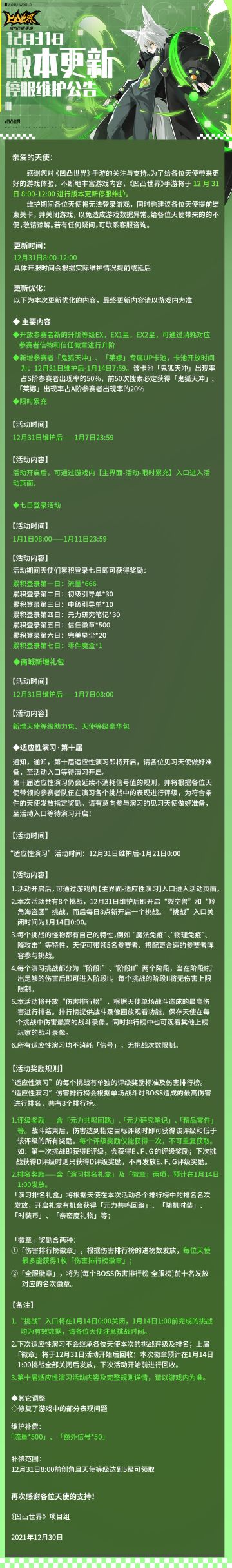 12月31日版本更新停服维护公告