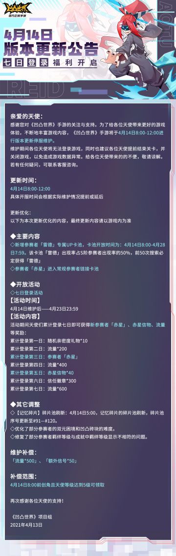 《凹凸世界》4月14日版本更新维护公告