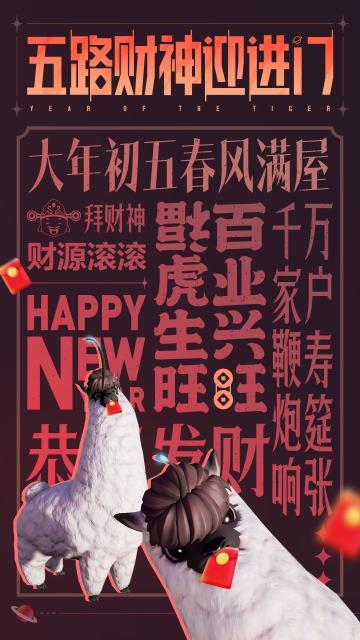 { "text": "大年初五拜财神!祝大家新年财源广进,红包多多!", "raw_text": "" }