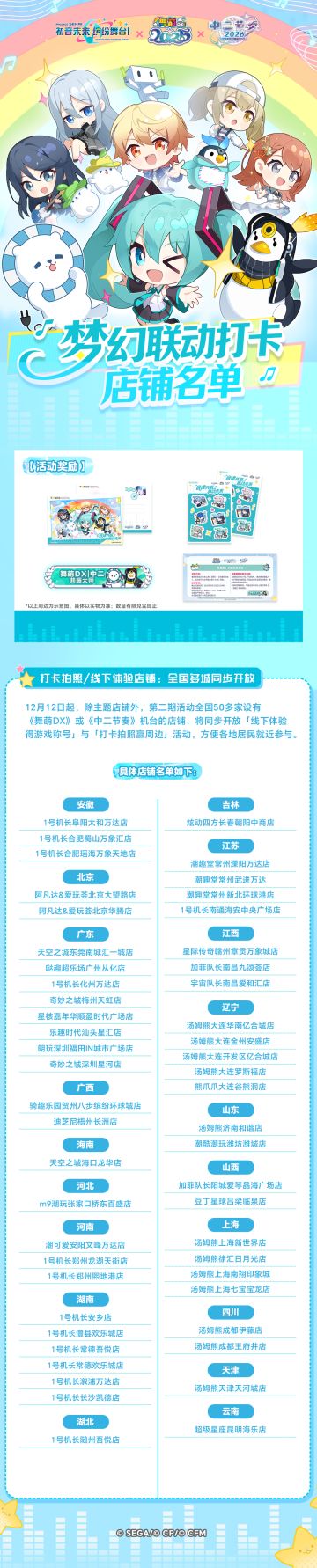 《初音未来缤纷舞台》×《舞萌DX》《中二节奏》联动打卡店铺追加