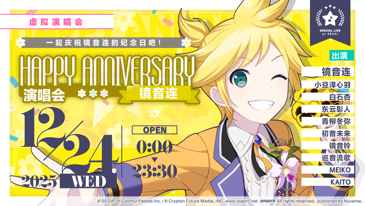 即将举办「HAPPY ANNIVERSARY 演唱会 镜音连 Flower」!