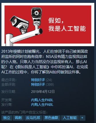 新游戏《假如我是人工智能》4月12日在steam解锁