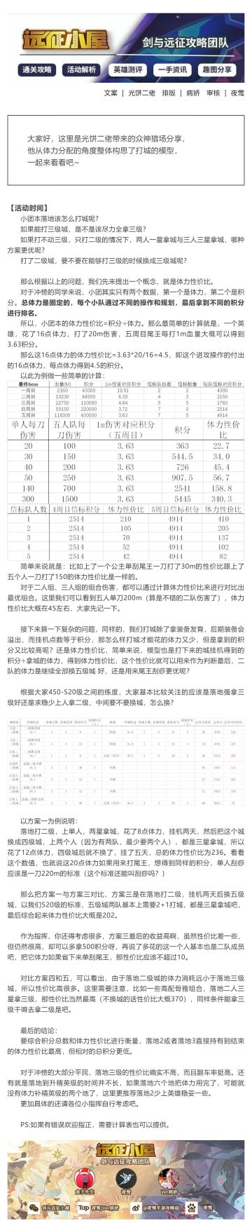【剑与远征小屋】小团本开局建议-打城规划篇