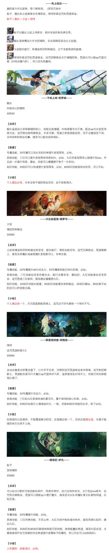盘点一下近期四族角色选择及练度建议