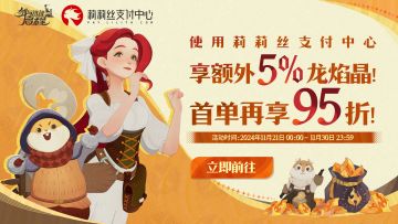 【限时活动】支付中心首单95折活动开启,另享5%龙焰晶加赠!