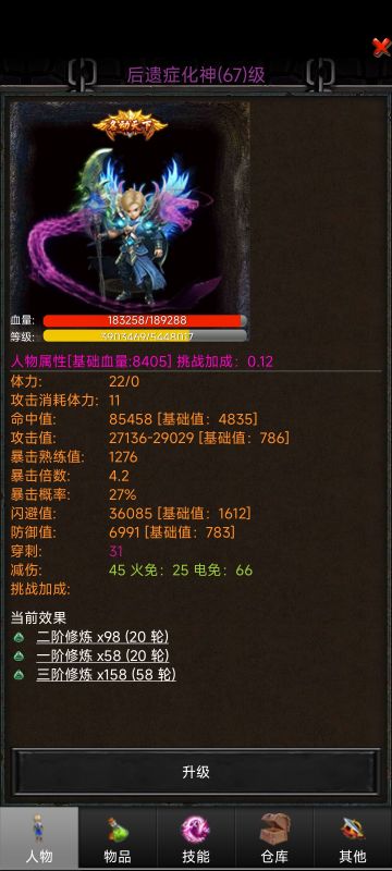 刚入化神境 出个攻略心得 开局先看背包没有900+就重新建人物 刷到900+就可以 都说加暴率 玄学一下 开局先吃一个修炼丹然后武器带上找村长领取任务然后往右走做打30个毒蜘蛛任务 多刷一点时间 最好有两把精钢剑 然后提交任务后往上走找长老继续做任务 打金壳虫 这个出戒指项链 慢慢挂机不要急 前20级全部加攻击之后攻击命中各一半 打到九级后把装备都带上多余的卖掉 去商店买防具 最便宜的就好 在买点