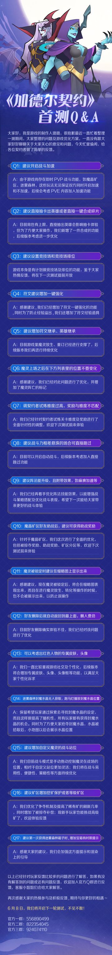 《加德尔契约》【Q&A】首测玩家建议反馈说明