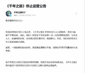 《千年之旅》停止运营公告