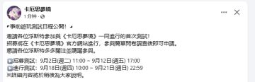 9月18日测试!9月2日申请!