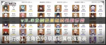 【排行榜】全角色90级基础属性速查表