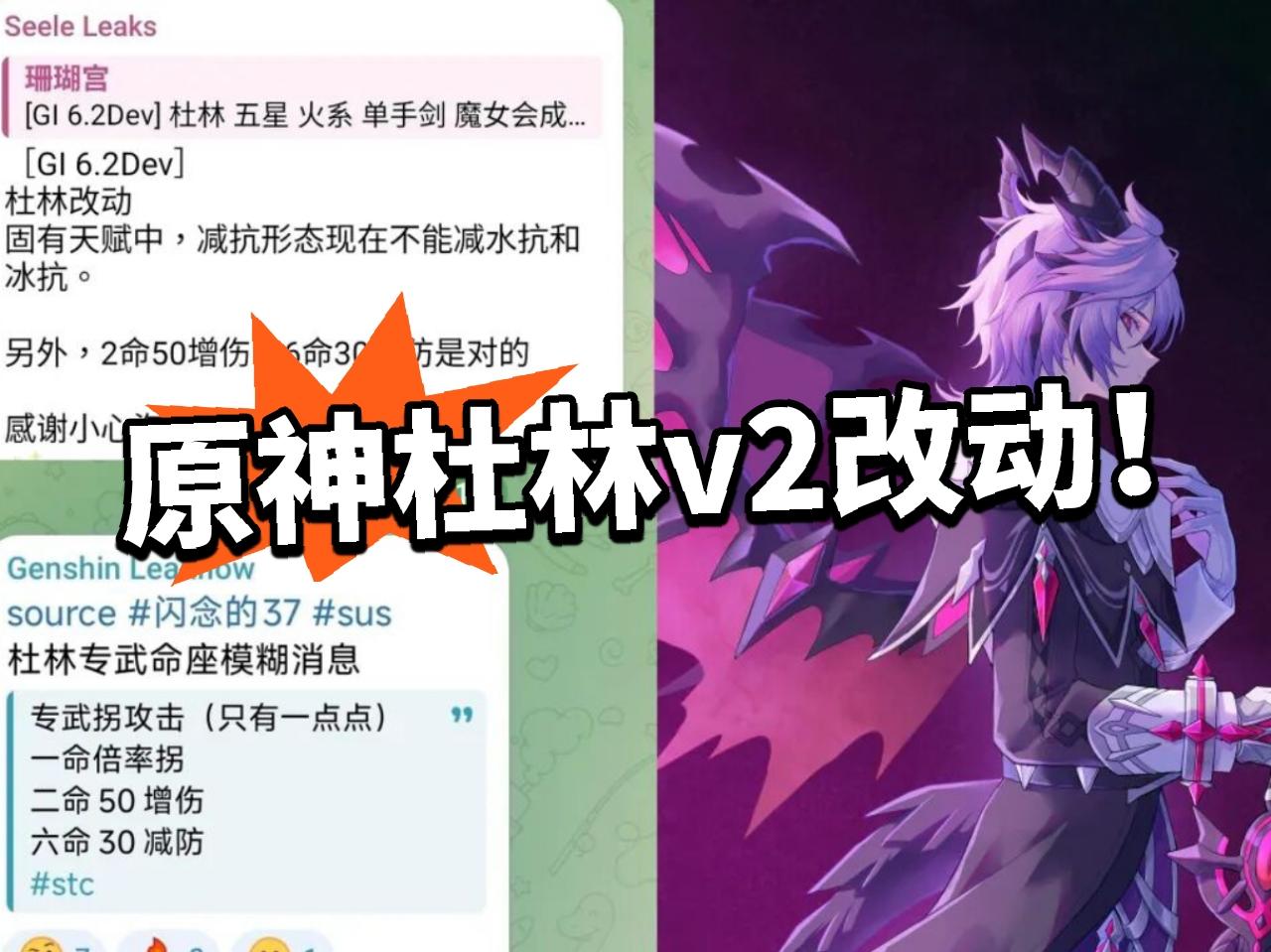 原神:杜林v2改动爆料!2命巨强!