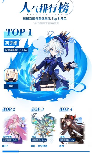 TapTap人气女角色投票:原神芙宁娜一骑绝尘