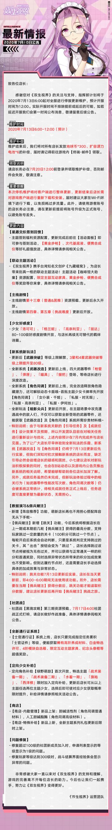 【双生视界】7月13日维护公告