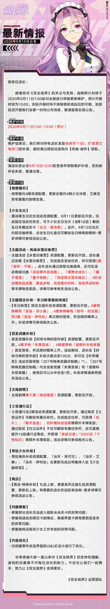 【双生视界】更新维护公告(9月11日)