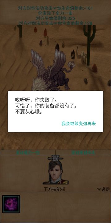 战斗的时候注意不要轻易死亡,会掉装备和仙力 和玉玺金币。
