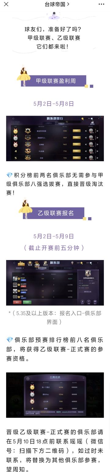 【帝国发布会】甲级联赛盈利周和乙级联赛报名同步开启!