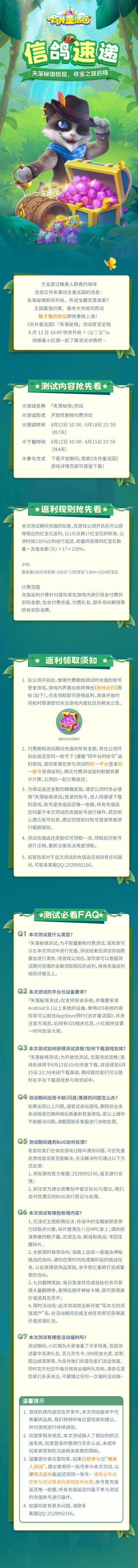 信鸽速递丨《合并童话国》失落秘境测试关服公告