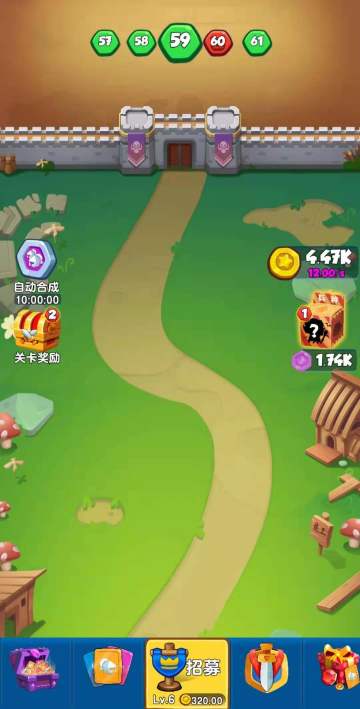 { "text": "合成与冲突战斗玩法深度解析\n\n 首先点击召唤兵种,再把等级一致,类型一致的兵种拖动合成为更高一级兵种,兵种的合成等级越高,属性也越高。然后玩家在拖动兵种前往战斗。\n\n1、合成区域。\n合成区域共有15个位置。包含了14个兵种位和一个回收位。玩家可以在兵种页面最高配置四个上阵兵种。然后点击召唤会随机召唤出一个兵种。 然后可以相互合成为更高级的兵种。如果有用不到的兵种,玩家可以拖动到回收位,回收掉该兵种,会返还一部分的金币。\n\n2、拖动上阵\n把合成区域的兵种拖动到城墙外,便可上阵兵种。兵种便会自动寻路前往攻击对方的城墙。目前上阵数量会根据闯关的关卡决定。关卡越高上阵的数量越高,最高为十位。\n\n3、金币\n召唤兵种会消耗金币,金币不足就无法召唤兵种。金币的主要来源是关卡的每秒产生。同样关卡越高每秒产出的金币就会越多。离线也会产生金币,并在玩家上线时,统一发放给玩家离线金币奖励。\n\n4、盲盒\n 盲盒主要是开兵种,玩家击杀对方的兵种的后,会获得盲盒币,满足一定条件后,便和打开盲盒,百分百可获得随机兵种的兵种碎片。\n\n5、城墙 \n 向上拖动屏幕,对面也会有一座城墙。城墙的最终就是决定了胜利的条件。当城墙的血量归0时,战斗就会胜利。如果是我方的城墙血量归0 那么就失败了。\n6、关卡\n 目前关卡设置共有一千余关。玩家每局战斗胜利,则自动前往下一关卡。以此类推。关卡数越大,关卡的难度越强大。需要玩家去培养兵种和合成兵种。\n\n7、自动合成和关卡奖励。 \n 自动合成是用于解放玩家的双手,玩家可以看广告或者使用宝石购买,可获得10分钟的自动合成时间,自动合成顾名思义,系统会自动合成玩家召唤位的可合成的兵种。\n 关卡奖励是激励玩家闯关的奖励,每十关一层奖励,关卡越高奖励越丰富,主要奖励包含货币和兵种碎片。\n\n8、战斗地图。\n 目前游戏内共有5张战斗地图。1、绿野林地。2,冰晶雪地。3、旋涡荒漠、 4,沉船海岛。 5、灼热深渊。\n 玩家没通过100关会自动切换到下一张地图。", "raw_text": "" }