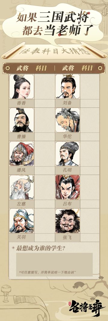 三国名师任教科目大竞选!主公们最想成为谁的学生呢?