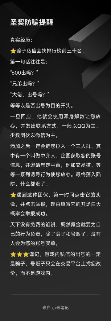 圣契防骗提醒