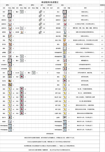 命运轮回2基础物品合成配方。