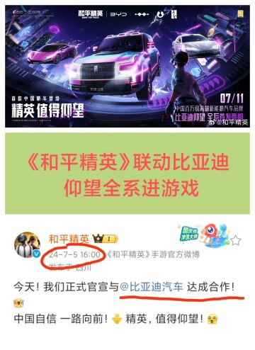 《和平精英》官宣与《比亚迪》达成合作❗❗❗