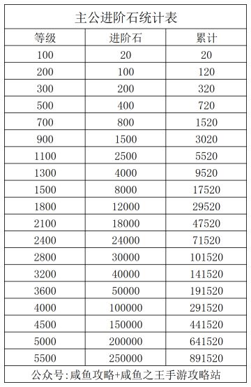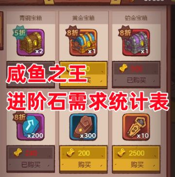 《咸鱼之王》进阶石需求统计表