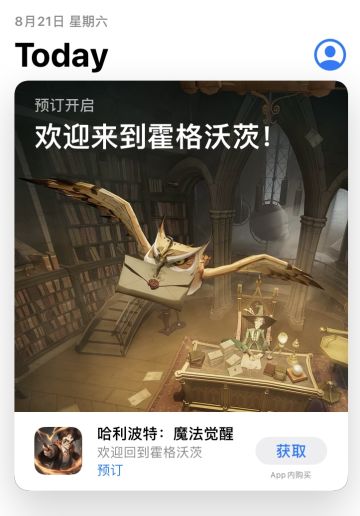 "text": "《哈利波特:魔法觉醒》获得App Store Today 推荐!同时,游戏全网预约已突破1000万,感谢同学们的支持与喜爱!\n\niOS预订已经开启,同学们可以前往App Store,搜索“哈利波特魔法觉醒”进行预订。游戏上线后,将第一时间提醒大家安装。\n\n分享你的录取通知书,还有机会参与抽奖。赶快点击门钥匙,参与活动吧>>https://www.taptap.com/topic/19051110\n\n《哈利波特:魔法觉醒》9月9日全平台上线!\n前往预约,解锁入学奖励 >>https://www.taptap.com/app/177635\n",