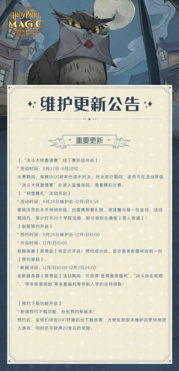 《哈利波特:魔法觉醒》11月24日维护更新公告