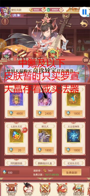《国漫之光》攻略之商店介绍Vol2 法器商店:不需要的法器分解后,在此兑换自己所需的法器和补天石,推荐法器多的时候分解换补天石。 仙缘商店;招募榜抽了几百次后开启隐藏的高级金仙兑换,建议大家仙缘不要乱用,推荐大家优先兑换罗宣,再换其他金仙升牵绊,每月10张访仙青词必换。 昆仑商店:不建议换卡,全换法阵和招募令,实在是差一个本体在考虑卡。#游戏图文新春挑战#攻略#国漫之光#国漫之光攻略