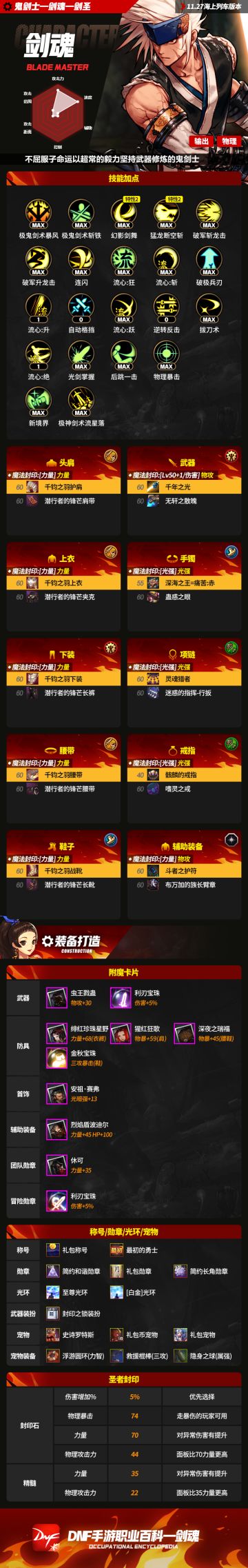 【职业百科:剑魂】DNF手游剑魂职业百科,加点配装打造