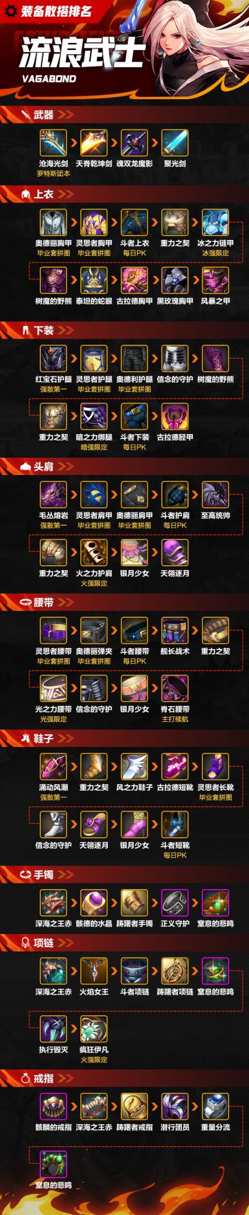 【攻略:装备】一图看完流浪武士散搭装备排名