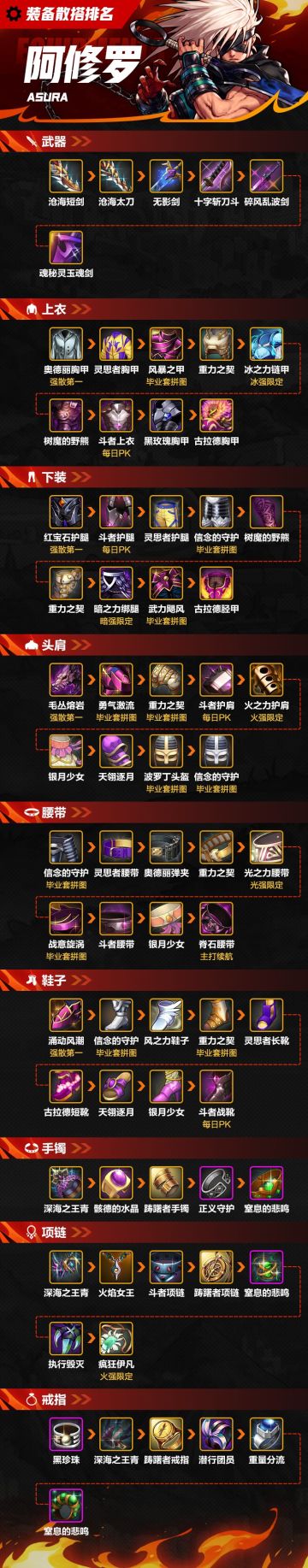【攻略:装备】一图看完阿修罗散搭装备排名